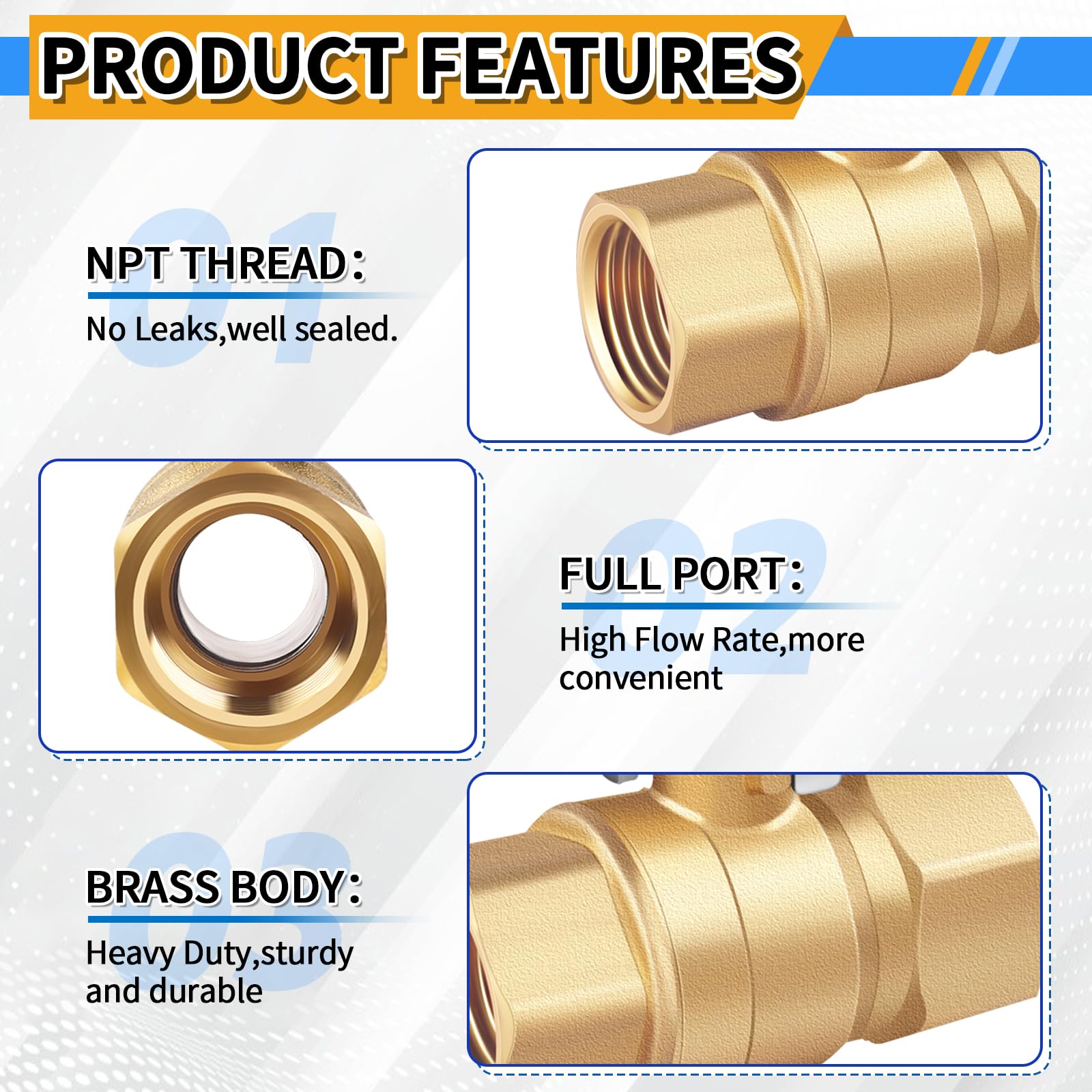 - 【Premium Brass Material】The 1/2'' full-flow ball valves are made of heavy duty solid brass with corrosion-resistant, solid and durable feature.