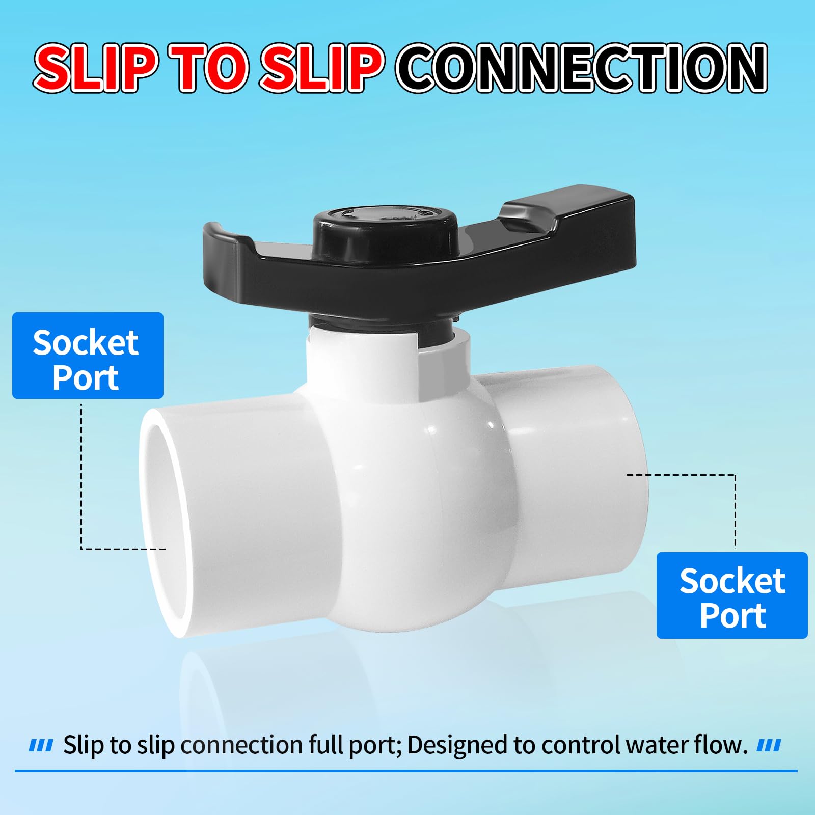 Boltigen 2pcs 1-1/2 inch Slip PVC Ball Valves, 1.5'' PVC Shut Off Valve with Double Socket Full Flow Port, ''T'' Nimble Handle SCH40 Plastic Control Valve, for Swimming Pool, Irrigation, Sewage Pipes