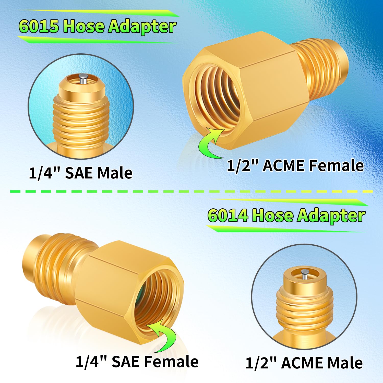 - 【Application】R134a tank adapters are suitable for charging and service tools, can be applied to vacuum pump, can tap, hose or oil injector to adapt between R12, R22 system and R134A systems.