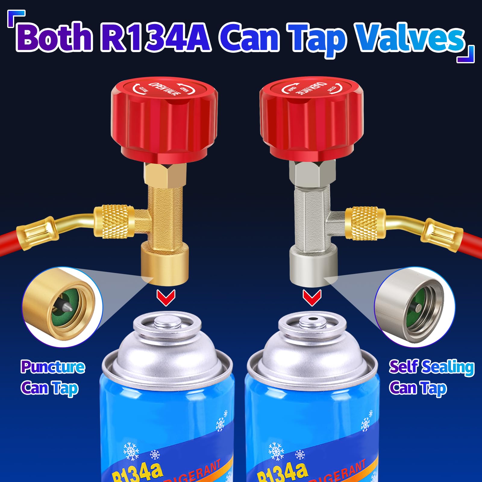 - 【R134a Can Taps】Our R134 can tap valves are made from brass, which has good durability and anti-rust, can deal with most extreme conditions. Artificial aesthetics red handle design for easy operation.