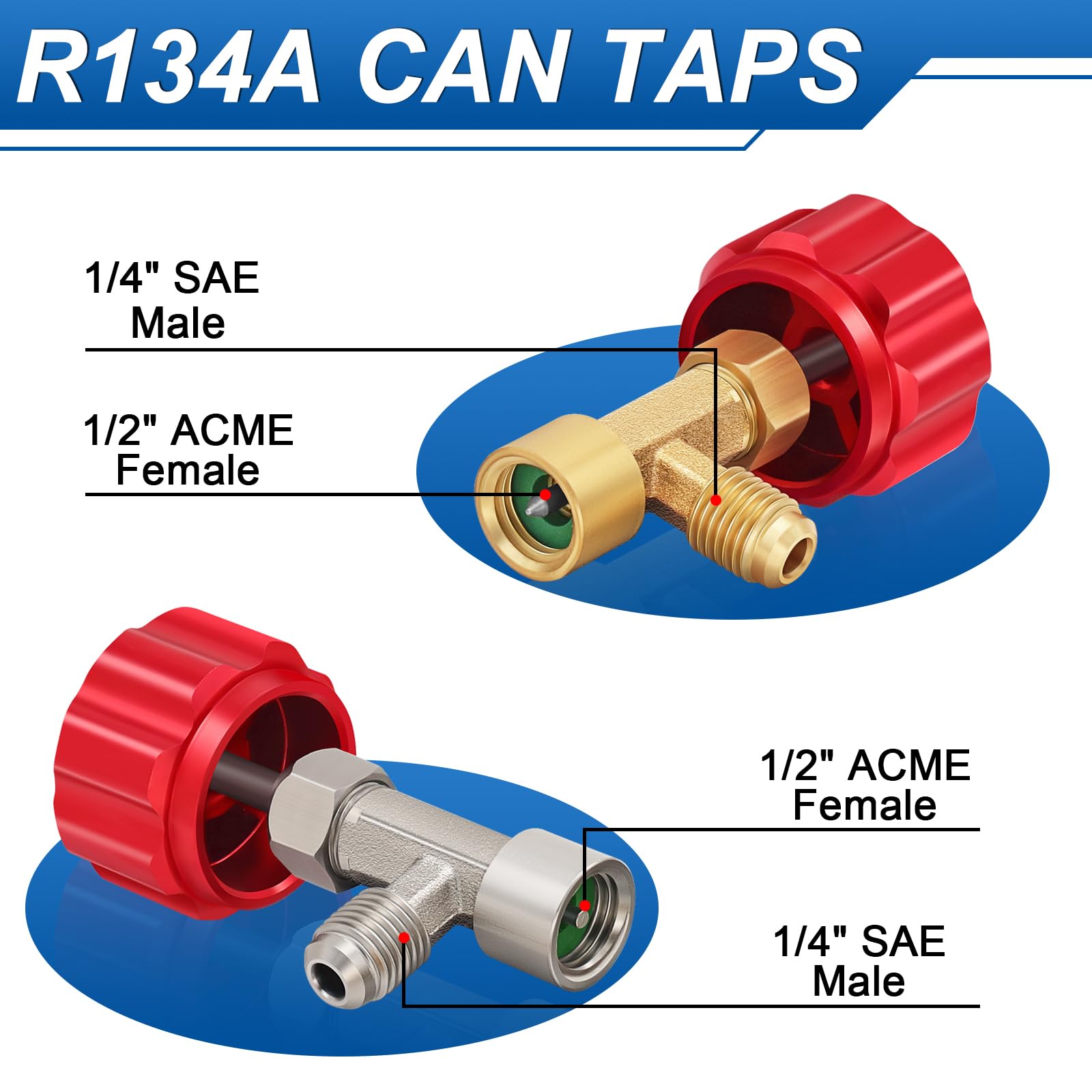- 【R134a Can Taps】 Our refrigerant can tap valves are made from brass, which has good durability and anti-rust, can deal with most extreme conditions. Artificial aesthetics red handle design for easy operation.