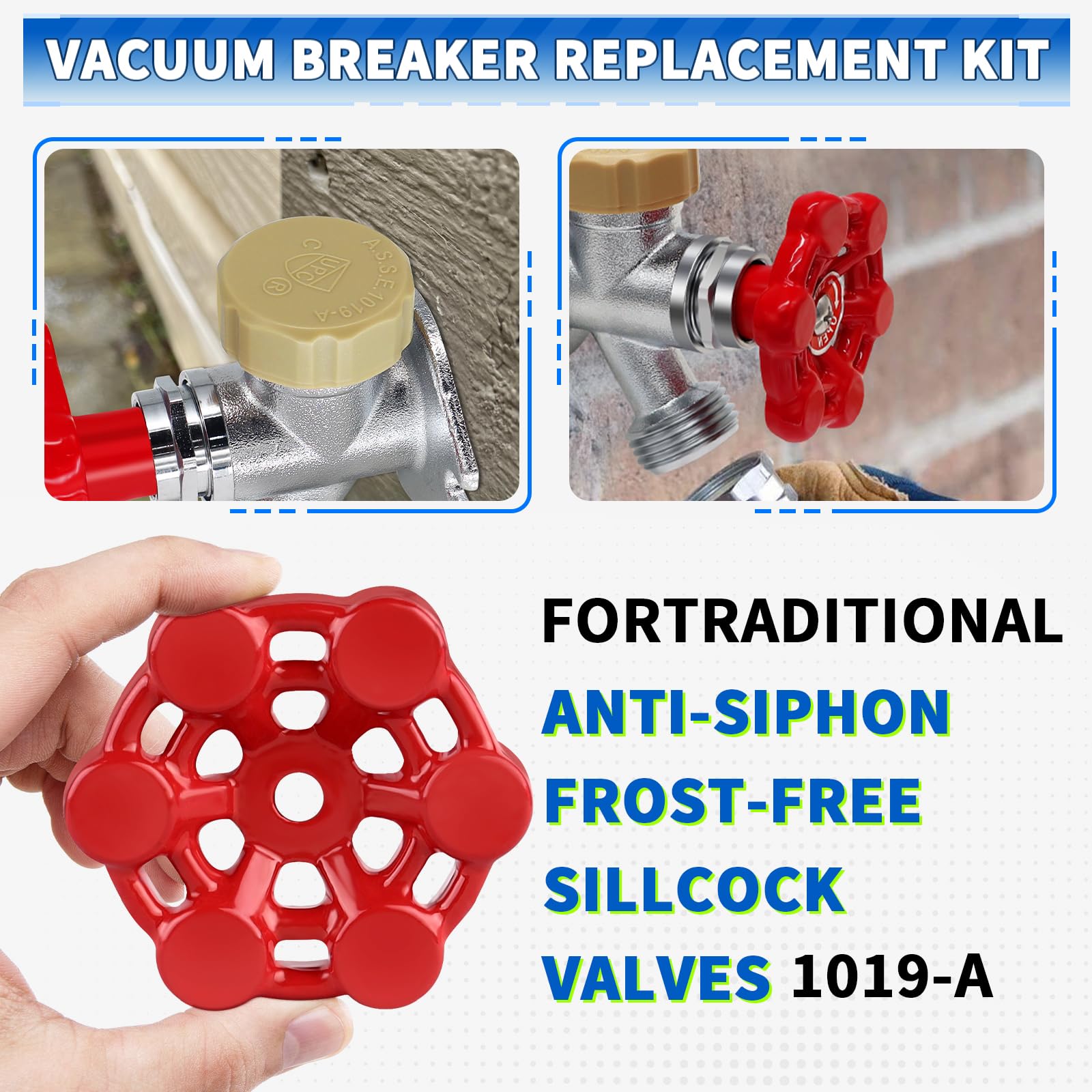 Outdoor Faucet Repair Kit, ASSE 1019-A Vacuum Breaker Outside Faucet Repair Kit, Vacuum Breaker and Handle Replacement Kit for Anti-Siphon Frost-Free Sillcock Valves, Wall Hydrant Complete Service Kit