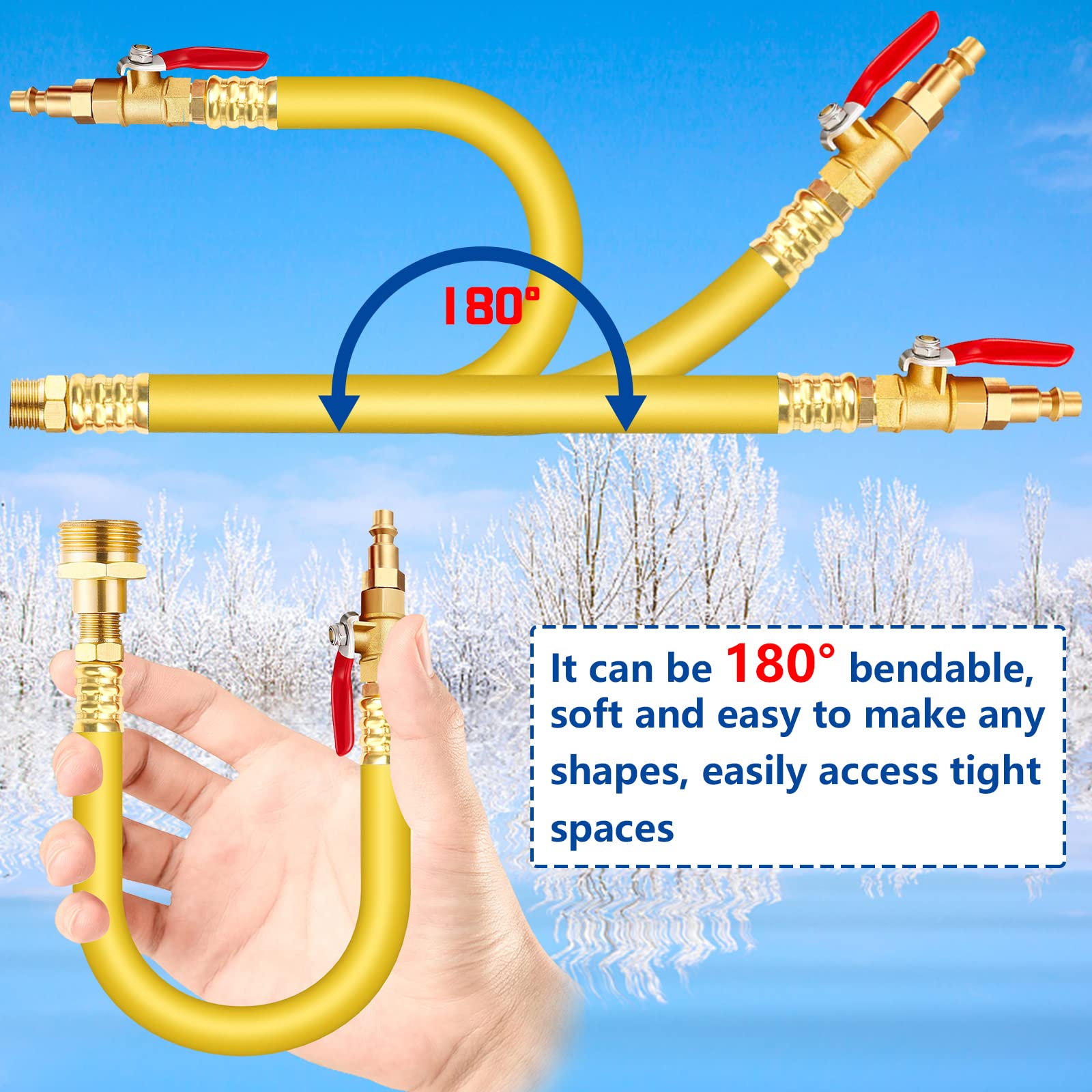 - 【 High Quality Material】The Winterizing Kit is made of solid lead-free brass with frosted parts of the highest quality. The 12 inches hose is made of flexible reinforced synthetic rubber, waterproof and corrosion-resistant, ensuring absolute sealing and excellent winterizing ability, withstand daily wear, can serve you for a long time.